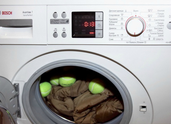 Чтобы наполнитель пуховика или одеяла при стирке не сбивался в кучу, положите в стиральную машинку несколько теннисных мячиков.