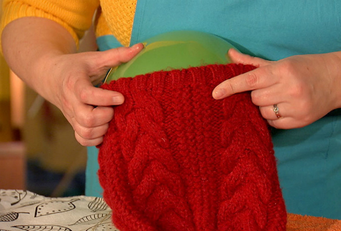 Чтобы шапка из натуральной шерсти не потеряла форму после стирки, сушите ее на надутом воздушном шарике.