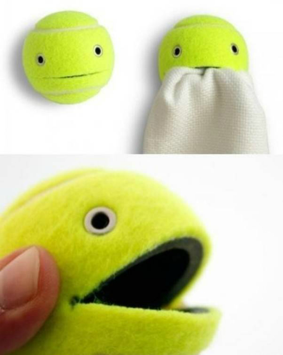 Из теннисных мячиков могут получится забавные и весьма удобные держатели для полотенец. Для этого нужно просто сделать небольшой продольный надрез посередине мячика и прикрепить его к стене в кухне или ванне.